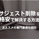 サジェスト・関連キーワード対策2025年11月12日サジェスト削除を格安で解決する方法|オススメの専門業者も紹介