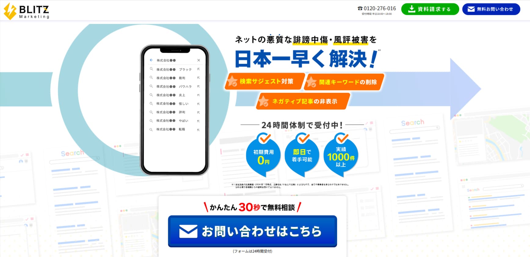 誹謗中傷・風評被害対策のプロフェッショナル「BLITZ Marketing」は、ネット被害によるイメージダウンの脅威からお客様を守ります。