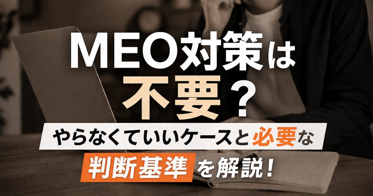 この記事では、MEO対策が不要と言われる理由から本当に必要なケース、費用の考え方までわかりやすく解説します。