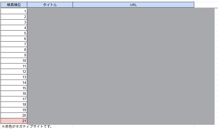 対策開始から数か月後、1ページ目に5件あった詐欺サイトは順次ランクダウン。最終的に、すべての詐欺サイトが21位(3ページ目)以下へと転落し、検索1ページ目・2ページ目までのクリーン化に成功しました。