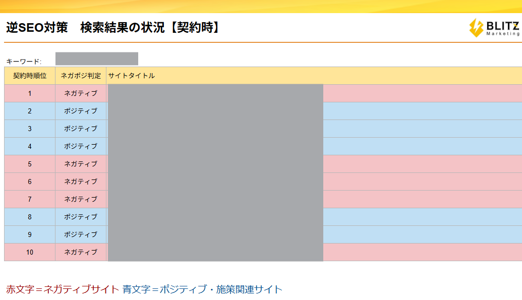 このプランでは、特定のキーワードにおける検索結果を監視し、1ページ目に表示されるネガティブサイトを良質なサイト群で順次押し下げていくことで、情報のクリーン化を目指します。